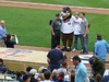 Returning for a moment to last night's TIWMATM -- the sound system -- I probably don't have to say any more for you to know what I mean, but I'm going to. There we were in section 233, row 21. That is one of those spots where the speakers are trained like a laser, and you get the full force of their nasal noisiness. Basically, you can forget about having a conversation between innings (and I refuse to have meaningful conversation while someone is trying to hit, pitch or field). The sound seems to get louder every year, and somehow also more obnoxious. (This is separate from the ratcheting up of the general obnoxiousness of the promotions.) Is it louder? Does anyone know? I mean, my hearing continues to deteriorate as I age, but the Dome continues to sound louder and louder. Are they trying to make up for the likelihood that we all lost a little bit of our hearing in there last summer? If that sound system hasn't been tuned recently, it's about time. Modern digital technology can do a lot more with those crummy speakers than is being done now. It would certainly be possible to create a mix that is present but not deafening. That should be the goal. MSFC? Hello? Pix But why am I yammering? You didn't come here to listen to me going on and on. You want pictures. I know it. Here they are: